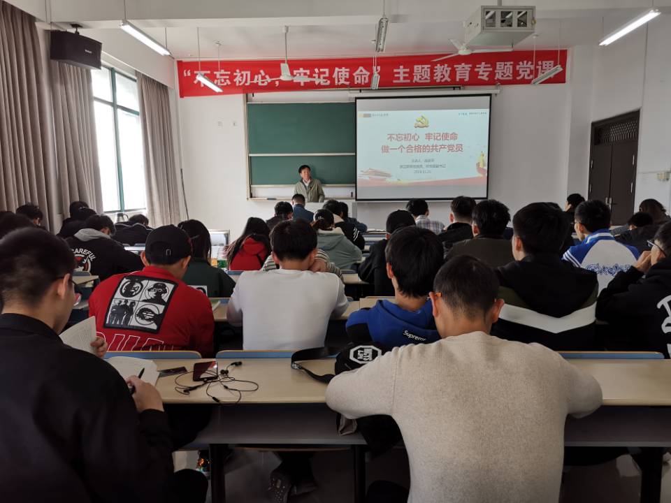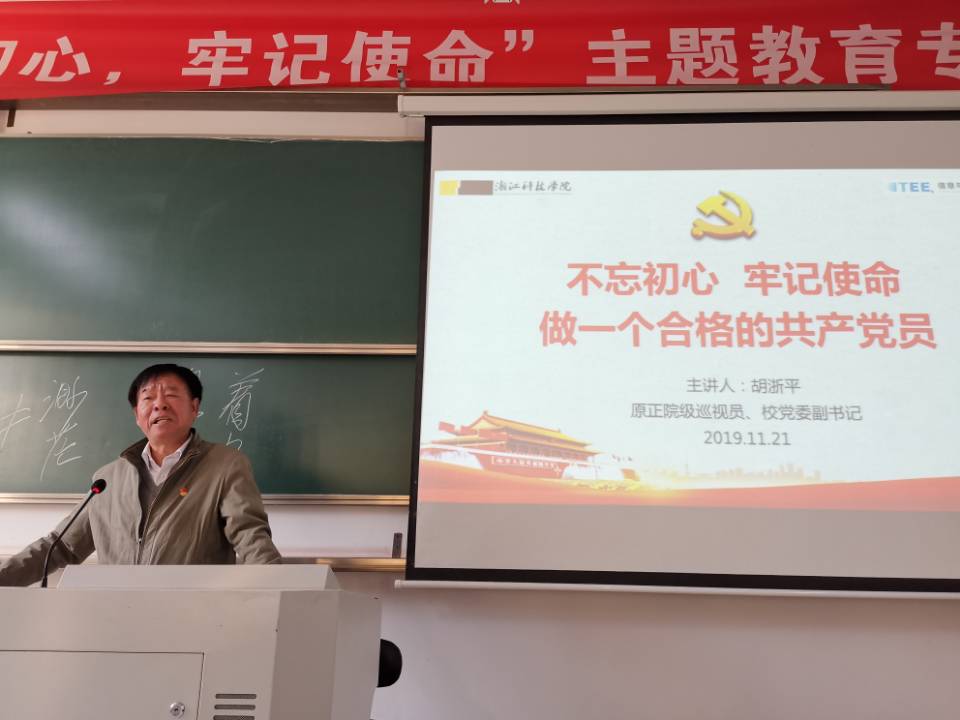 二十六期党校第三次党课暨“不忘初心,牢记使命,做一个合格的共产党员”主题教育专题教育学习报告会于11月21日下午14:20在C1-651举行。第二十六期党校全体学员参加了党课学习。本次党课由原正校级巡视员、校党委副书记胡浙平老师主讲。
