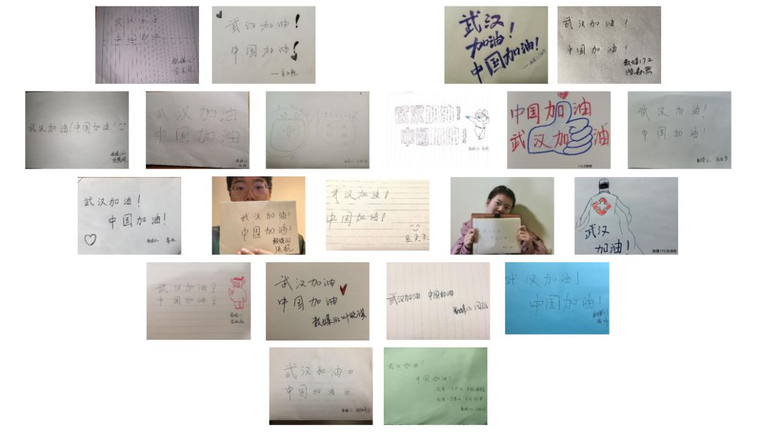各位同志纷纷在纸上写下“武汉加油!中国加油”的祝福语。向所有奋战在一线的英雄们致敬!齐心协力,一起共度难关!