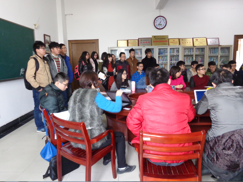 3月11日中午12点30分,C1-518会议室坐满了人,还有许多站着来本次见面会,其中不只有大三的学生,还有许多大二大一的同学,他们都是奔着该公司来的,都对微营势力移动互联网非常感兴趣。首先,姚学长为我们介绍了当前移动互联网发展的历史和方向以及什么是微聚合,微聚合是移动互联网时代中小实体企业商务电子解决之道。主要是基于互联网的一系列应用软件的开发,比如“易聊”,这是一款比“微信”应用更早的软件,可见该公司的技术实力。随后与我们分享了自己的折腾理念,展示了自己对事业不满足现状的野心。最后,龙骞科技人力资源总监为我们介绍了龙骞科技有限公司“诚信共享,以人为本”的公司理念,“精准求实,创造价值,创业创新,不断超越”的核心思想以及“完美舒适,广阔”的就职环境等,并邀91制片厂