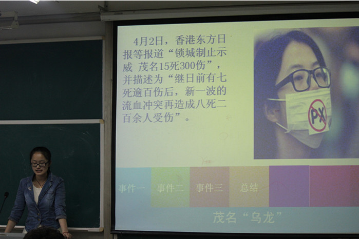 比赛伊始,选手现场抽签决定出场顺序,两位主持人宣布比赛规则。之后,每位选手上台进行精彩的演讲,他们将文章出轨、东莞扫黄、飞机去哪儿了、信息大爆炸、茶叶蛋事件等时事政治分析的透彻深刻。此次时事评论大赛,使每位参赛选手以及现场观众更加了解近期国内外大小时事要闻,增强对时事热点的兴趣,增强大学生的社会责任感。