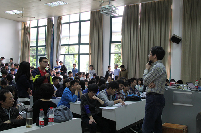 随后,张有光教授将话题引申到了大学的理念。如何造就完整而健康的大学教育?张教授认为需要三者和谐统一。一者,教师对学生的教育;二者,学生对学生的影响;三者,学生独自学习。不仅如此,张教授还补充道,当代大学生需要明确自身大学的任务:科学研究、个性培养和道德修养。张有光教授引用了许多名人名句来谈大学教育和如何培养大学生自身的素质,让同学们深受启发。