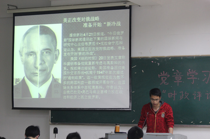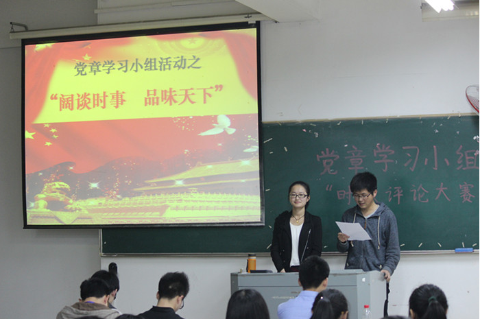 时政评论比赛以班级为单位,各班演讲者经过赛前的精心准备,各位选手纷纷发表了对“文章出轨”、两会、“马航”等时事的看法,或抑扬顿挫,或深情感人,流畅、充满逻辑的演讲博得阵阵喝彩。演讲结束后由评委提问进行答辩环节,四位评委根据答辩情况打分。所有班级演讲结束后,评出一至八名,最后由信息中研副会长钟灵杰上台进行最后的整体点评,精辟独到的点评亦赢得热烈掌声。