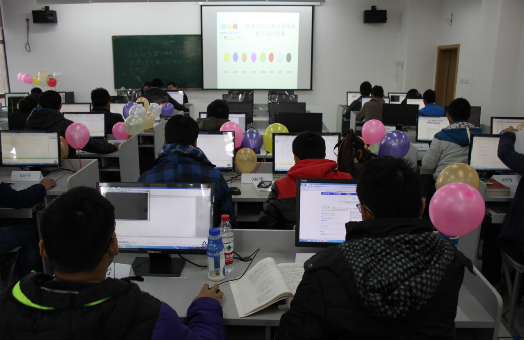 联合举办的第一届ACM-ICPC(世上最牛逼的国际大学生程序设计大赛)新生赛。来自大一的编程高手们纷纷来这一展拳脚,集训队的前辈们也带着奖品与气球欢快地帮忙组织比赛。