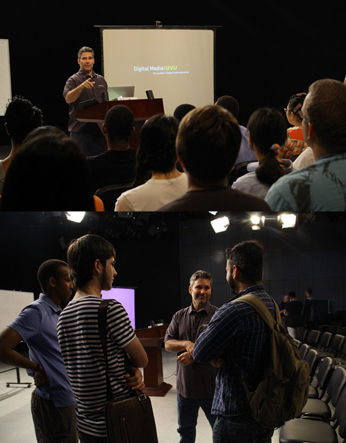 5月14日周四13:30,以“数字媒体产业发展与人才需求”为主题的报告演讲在实验中心524举办。本次论坛由犹他谷州立大学教授Rodayne Esmay主持演讲。Rodayne Esmay拥有美国犹他州杨百翰大学文学学士学位和纽约锡拉丘兹大学美术硕士学位。Rodayne Esmay任教于犹他谷大学已有十年。他曾作为一个漫画家,设计师和艺术总监为飞利浦电子和艾伦通信工作。期间,Rodayne也为世界500强客户,包括丰田,福特,联合太平洋铁路公司,时代镜报和信诚证券工作。在教学育人的十年里,他曾执导过多个获奖项目。其中一个项目是3D动画电影“蜥蜴和天梯”,被美国电影艺术与科学91制片厂