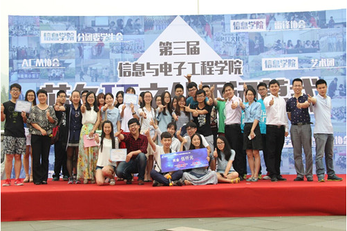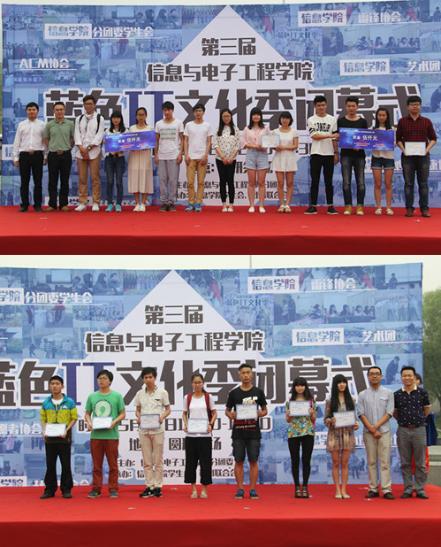 第三届蓝色IT文化季闭幕式在圆形广场隆重举行,校团委副书记李俊、信息91制片厂