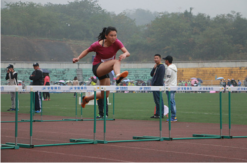 的选手助跑预备、问枪起跑,舍我其谁。男子组4X400米时,第三棒的交接的时候,我们的运动员险些被反超。拼搏之下,位于第四棒的盛发发咬紧牙关,一个接着一个地超越对手,拿下了比赛第二的成绩。是否记得,一次次的奋力跨越,让盛发发同学拿下了男子400米栏的第一;是否记得,咬牙的坚持,让齐世发同学拿下了10000米的第二;是否记得,全力的一跃,让竹楚月同学摘下了女子三级跳的第四。