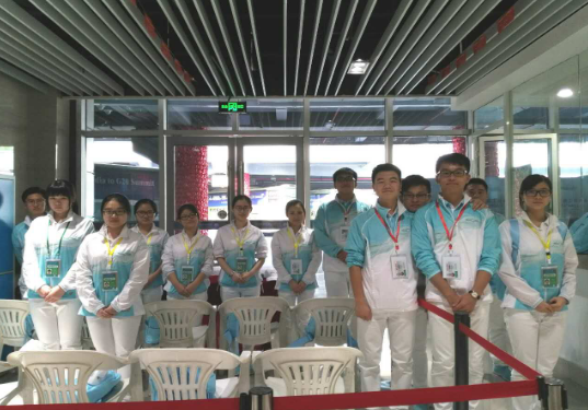 的小青荷们来到各个岗位,挥洒汗水。在上岗前,他们认真地练习英语;峰会开始后,他们严阵以待,用最饱满最积极的姿态,向来宾绽放出真诚的笑容。新闻组的同学们披星戴月,他们看过早上五点的晨光熹微和凌晨一点的满天繁星;安检组的同学们承担着为安保人员和外宾翻译的重任,他们用流利的口语向世界表现着杭州青年大学生的素养;演出组的同学们工作最为神秘,尽管最后没有看到演出,但他们像一株株小树,扎根在岗位上,甘于寂寞,保卫演出;城市保障组的同学最为辛苦,他们最先上岗,走过烈日下的树荫,走过微风中的垂柳,身姿挺拔,一致的步伐声书写峰会最动人的乐章。