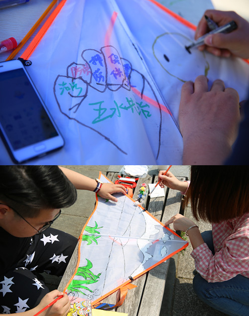 活动一共分为“纸鸢绘梦、放飞梦想、游园迎春”三个环节。最显同学们强烈治水信念的,是在“纸鸢绘梦”环节中,参赛选手们充分发挥创造力,将“美丽家园”与“五水共治”相结合进行创作,在风筝上渲染出了一幅幅承载着科院学子们心中“绿水青山梦”的美丽画卷。这些五彩缤纷的风筝,不仅传递着“绿水青山就是金山银山”的绿色理念,还寄托了同学们对“五水共治,共建美丽家园”的心愿、梦想和祝福。蔚蓝天空中,承载着对治水美好祈盼的手绘风筝,乘着春风愈飞愈高,铸就了一道靓丽的科院风景线。