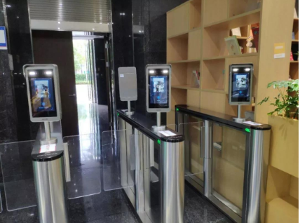 从一进门开始,映入眼帘的就是通过人来识别来确认身份的自动门,自动门通过人来识别来确认员工身份。人脸识别,是基于人的脸部特征信息进行身份识别的一种生物识别技术。用摄像机或摄像头采集含有人脸的图像或视频流,并自动在图像中检测和跟踪人脸,进而对检测到的人脸进行识别的一系列相关技术,通常也叫做人像识别、面部识别。