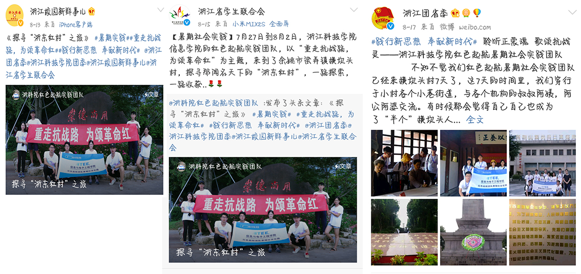 在紧张的七天行程里,队员们追寻抗战足迹,走访红色基地,学习红色革命精神;明悟乡村振兴,探索革命老区振兴之路;拜访老党员和老干部,聆听红色故事,传承革命事迹。红色起航团队的活动事迹也得到浙江团省委、省学联、中国大学生网、大学生校内网、当代大学生网等微博、公众号、网站广泛报道。