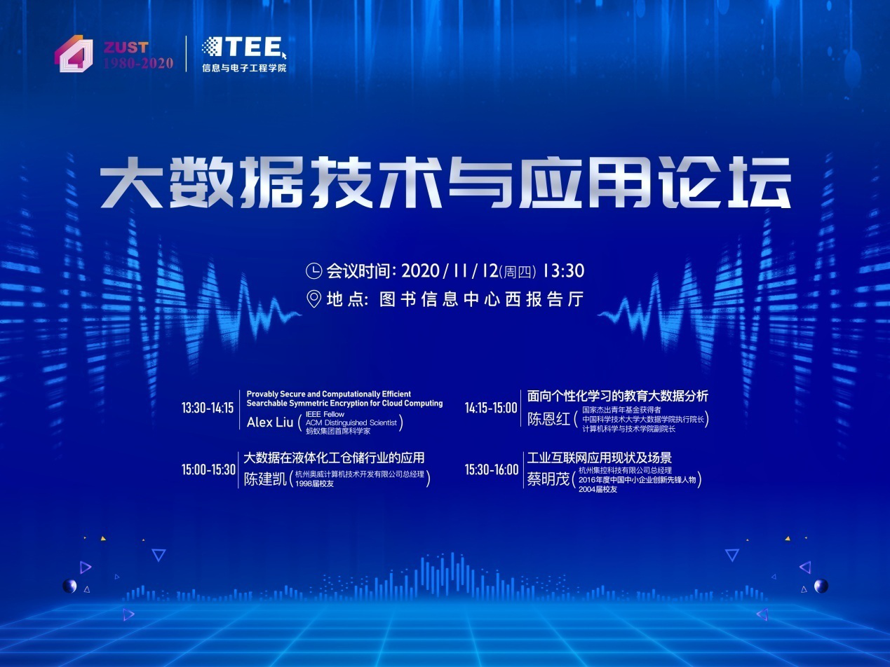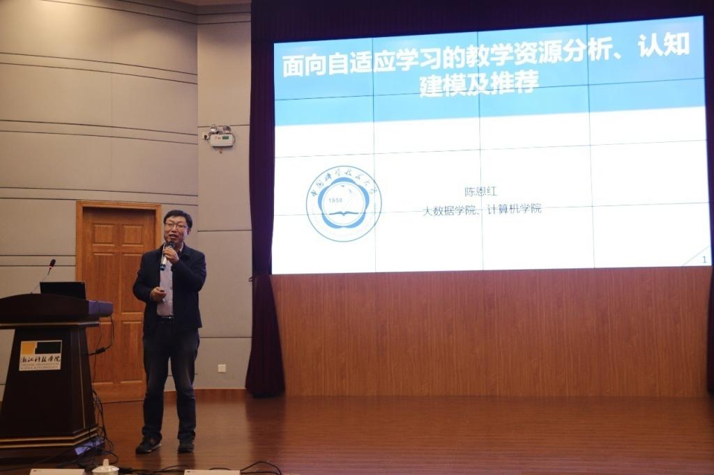 副院长陈恩红;杭州奥威计算机技术开发有限公司总经理,1998届校友陈建凯;杭州集控科技有限公司总经理,2016年度中国中小企业创新先锋人物,2004届校友蔡明茂等专家校友分别做主题报告,讲述了当前大数据理论研究及其在多领域的运用和发展状况。