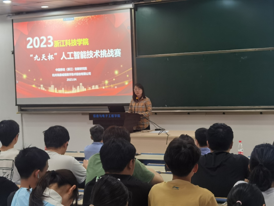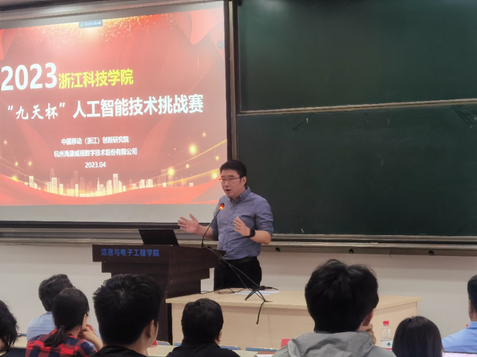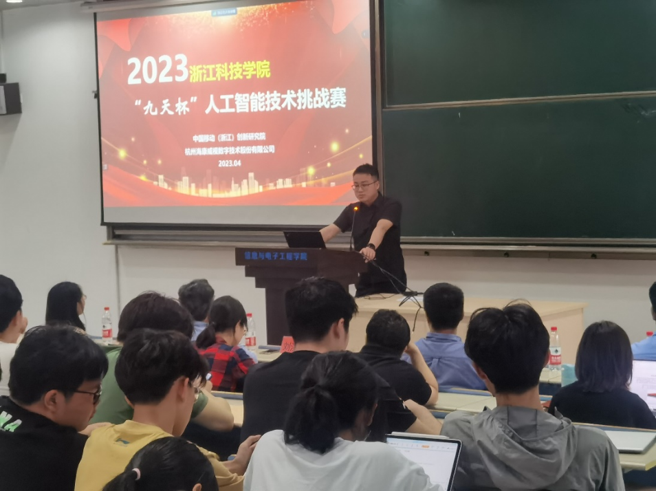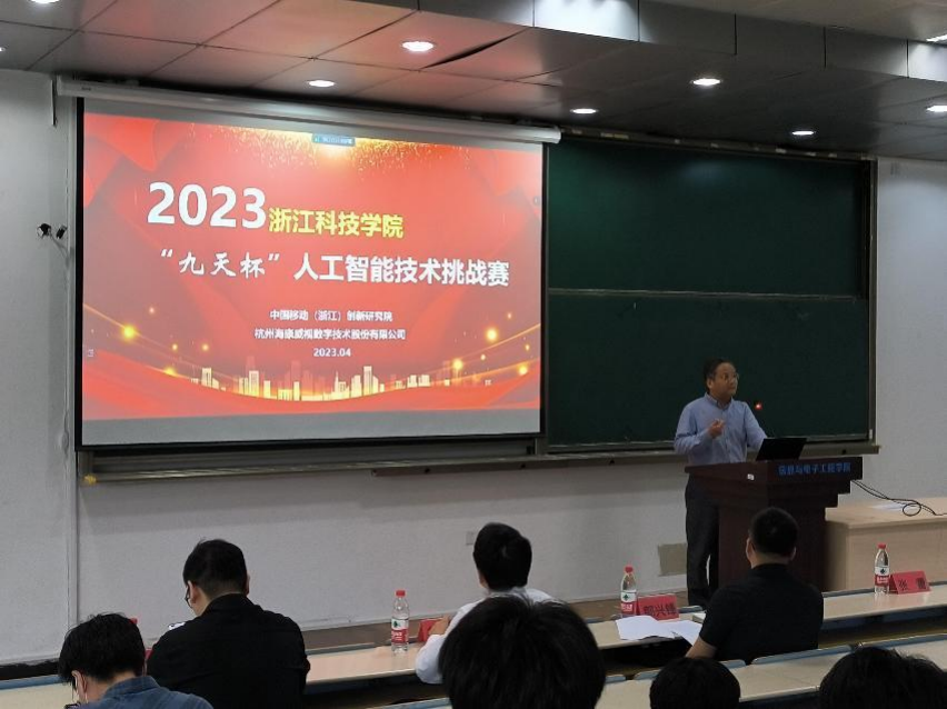 联合中国移动(浙江)创新研究院、杭州海康威视数字技术股份有限公司共同举办“九天杯”人工智能技术挑战赛。本次挑战赛面向校内学生,由企业指定命题,九天•毕昇人工智能平台提供算力资源支持,企业为参赛学生设立了奖金、奖品、实习机会等奖励。