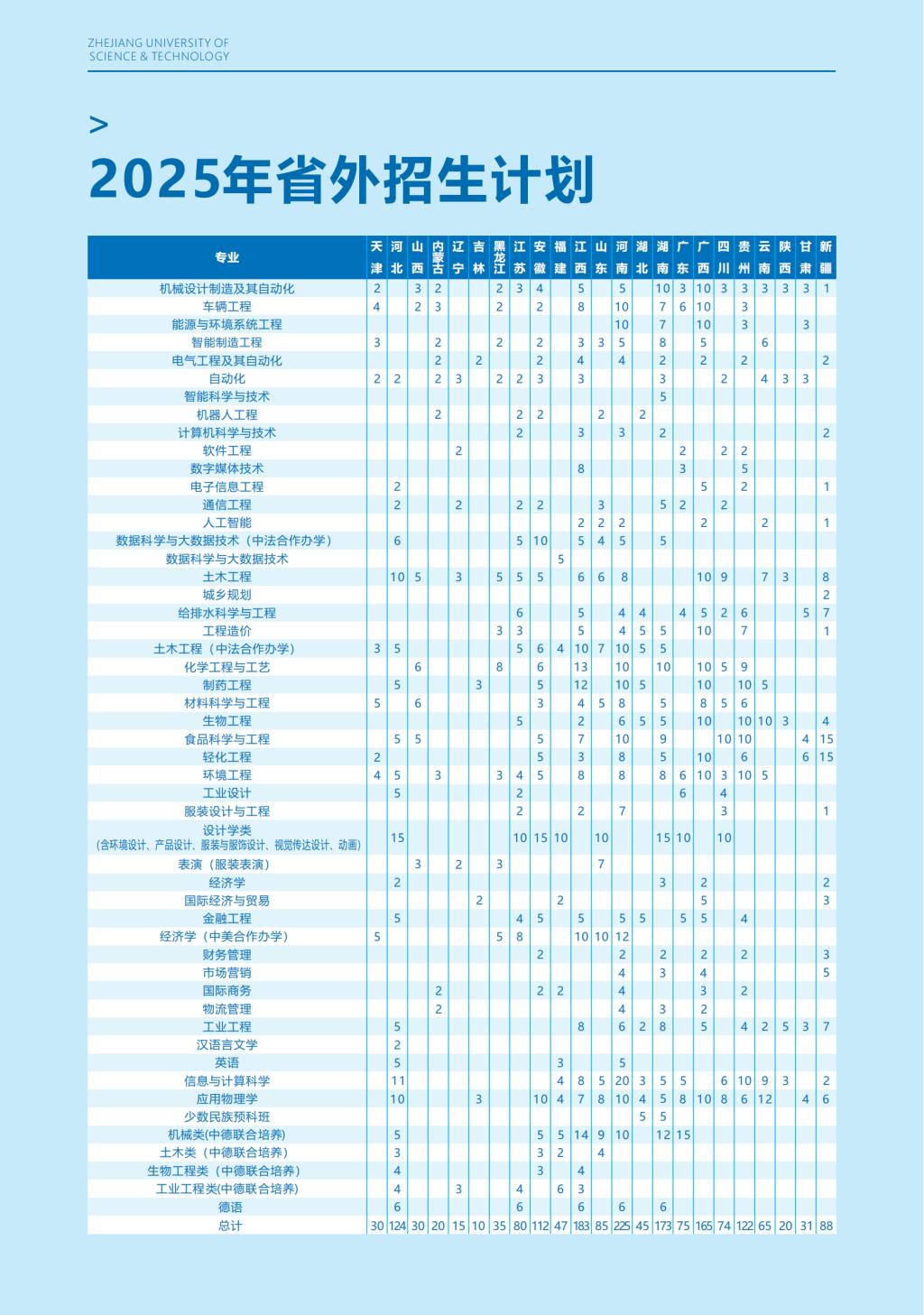 2025年计划招生5970人,其中浙江省内4106人,包括“三位一体”综合评价招生240人、普通类专业2277人、艺考类统考批(设计学类、表演(服装表演))268人、地方专项计划22人、单考单招本科459人(含中本一体化转入)、二学位60人、专升本计划780人。面向浙江省以外的23个省(市、自治区)计划招生1854人。不分省招生计划10人(预科班转入)。另外学校联合招收华侨港澳台学生计划10人,台湾地区学测入学10人。招生计划较上一年度有大幅度增加,除联合培养外,在本校就读的学生招生计划增加1170人。